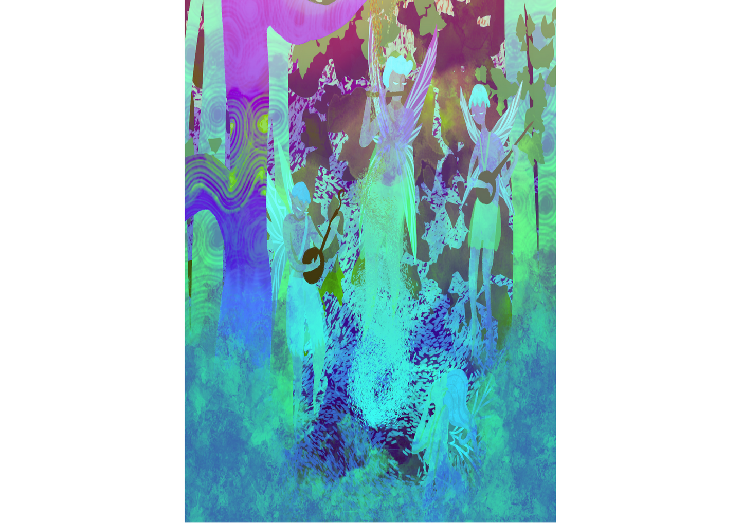 Las hadas se muestran en esta imagen "ocultas" a plena vista. Esto representa la música, la oscuridad y el misterio durante la noche. Esta tarjeta es la mitad de una imagen completa. El sol es su contraparte.